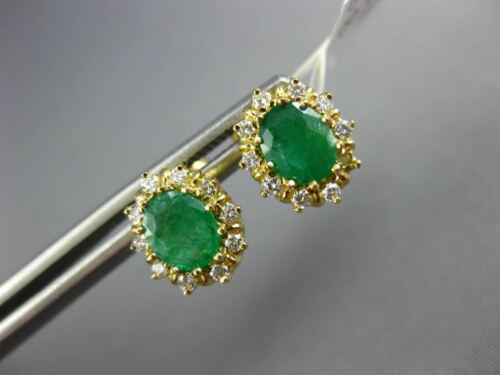 ESTATE 14KT YELLOW GOLD STUD EARRINGS. 3D CLASSIC FLOWER DESIGN. ROUND DIAMONDS ARE F/G COLOR, VSSI CLARITY .50 CARATS. AAA OVAL EMERALDS ARE 1.0 CARATS. MEASURES 9mm X 8mm. WRITTEN APPRAISAL AVAILABLE. COMES IN A PRESENTABLE GIFT BOX.