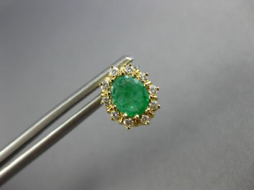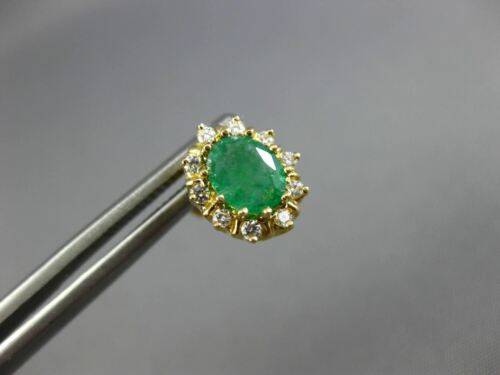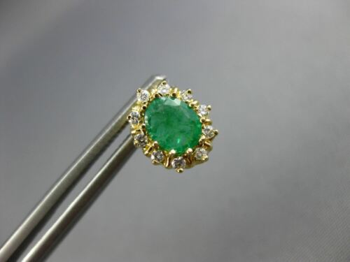ESTATE 1.50CT DIAMOND & AAA EMERALD 14K YELLOW GOLD 3D OVAL FLOWER STUD EARRINGS