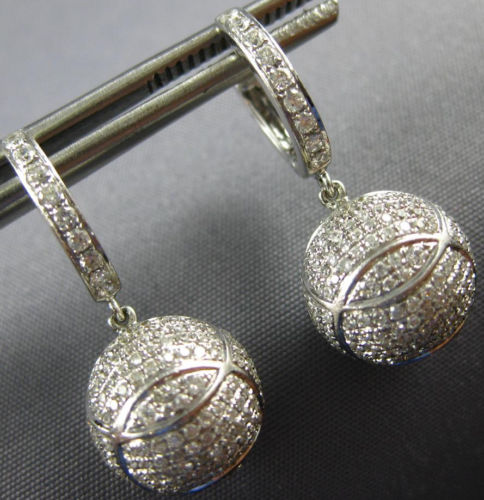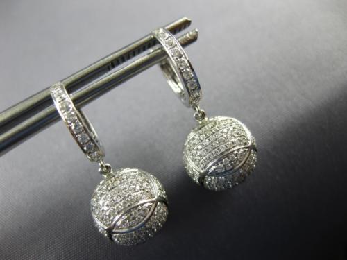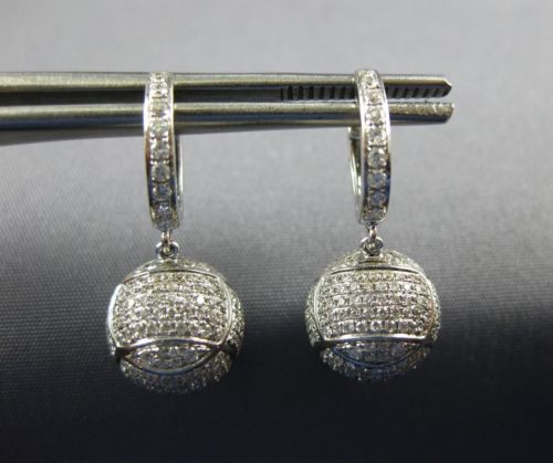 ESTATE 18KT WHITE GOLD HANGING FUN EARRINGS. 3D SOCCER BALL DESIGN. DIAMONDS ARE F/G COLOR, VSSI CLARITY 1.52 CARATS.  MEASURES 23mm X 10mm. WRITTEN APPRAISAL AVAILABLE. COMES IN A PRESENTABLE GIFT BOX.