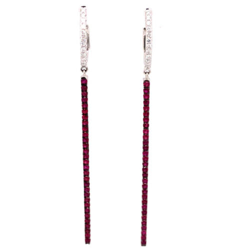 ESTATE 18KT WHITE GOLD HANGING EARRINGS. 3D CLASSIC BAR DESIGN. DIAMONDS ARE F/G COLOR, VSSI CLARITY .25 CARATS. AAA RUBIES ARE 1.27 CARATS.