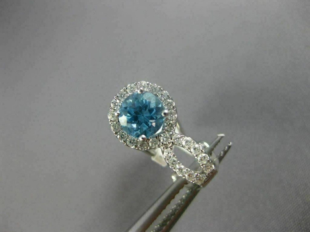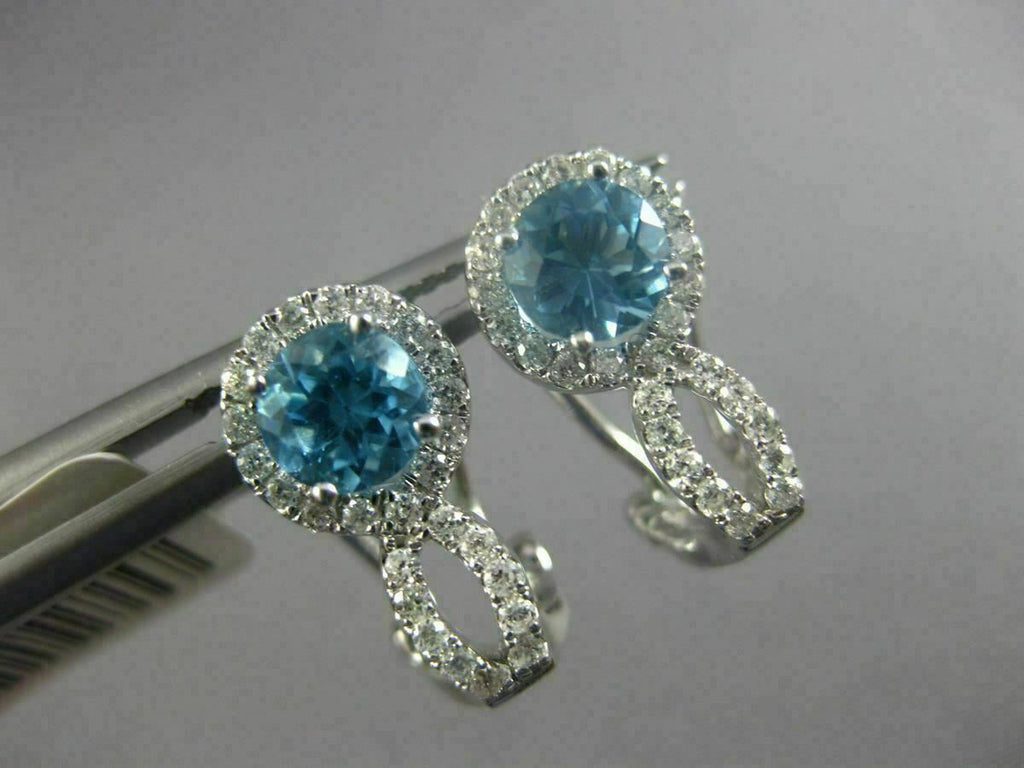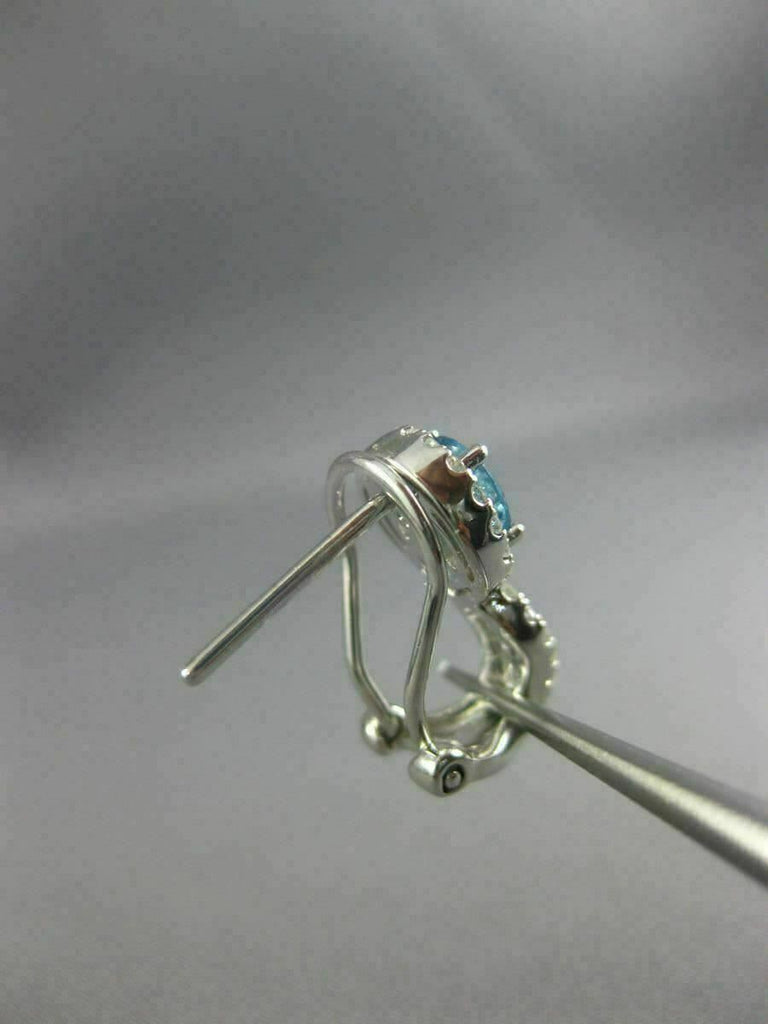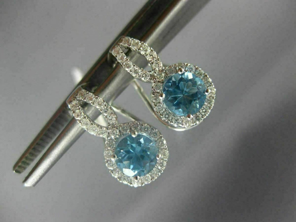ESTATE 1.54CT DIAMOND & AAA BLUE TOPAZ 14K WHITE GOLD 3D FLOWER HANGING EARRINGS