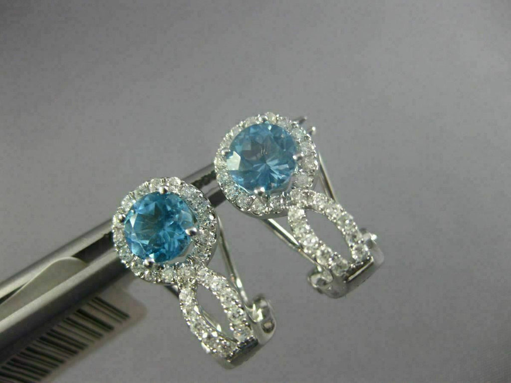 ESTATE 14KT WHITE GOLD CLIP ON EARRINGS. 3D ROUND INFINITY DESIGN. DIAMONDS ARE F/G COLOR, VSSI CLARITY .34 CARATS. AAA ROUND BLUE TOPAZ ARE 1.20 CARATS. WRITTEN APPRAISAL AVAILABLE. COMES IN A PRESENTABLE GIFT BOX.