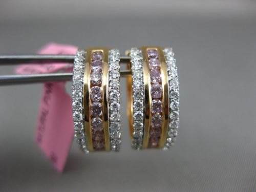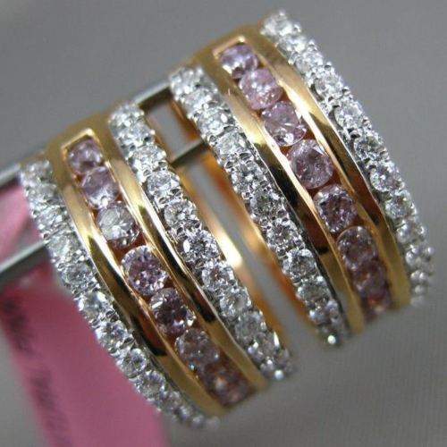 ESTATE 18KT ROSE GOLD HUGGIE EARRINGS. 3D THREE ROW HEART DESIGN. DIAMONDS ARE F/G COLOR, VSSI CLARITY .68 CARATS. PINK DIAMONDS ARE .86 CARATS. MEASURES 18mm X 7mm. WRITTEN APPRAISAL AVAILABLE. COMES IN A PRESENTABLE GIFT BOX.