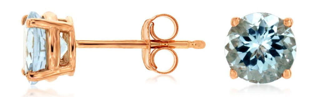 ESTATE 14KT ROSE GOLD STUD EARRINGS. 3D CLASSIC DESIGN. AAA EXTRA FACETED ROUND AQUAMARINES ARE 1.55 CARATS. WRITTEN APPRAISAL AVAILABLE. COMES IN A PRESENTABLE GIFT BOX.