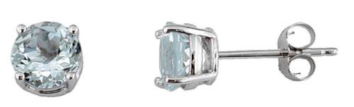 ESTATE 14KT WHITE GOLD STUD EARRINGS. 3D CLASSIC DESIGN. AAA EXTRA FACETED ROUND AQUAMARINES ARE 1.55 CARATS. WRITTEN APPRAISAL AVAILABLE. COMES IN A PRESENTABLE GIFT BOX.