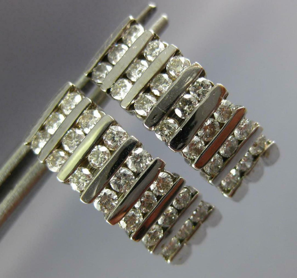 ESTATE 1.55CT DIAMOND 14KT WHITE GOLD 3D 3 ROW CHANNEL HANGING EARRINGS #1122