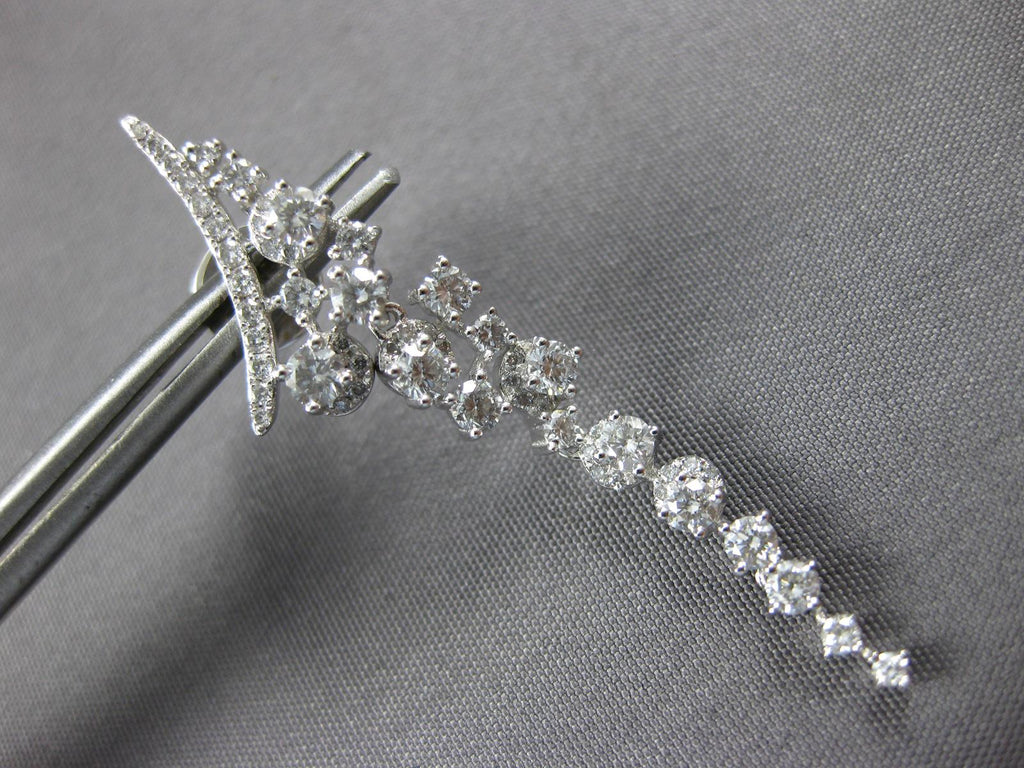 ESTATE 1.55CT DIAMOND 18KT WHITE GOLD 3D CHANDELIER HALF MOON HANGING EARRINGS