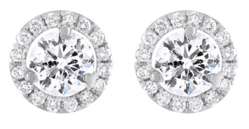 ESTATE 1.55CT DIAMOND 18KT WHITE GOLD ROUND CLASSIC SOLITAIRE HALO STUD EARRINGS