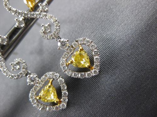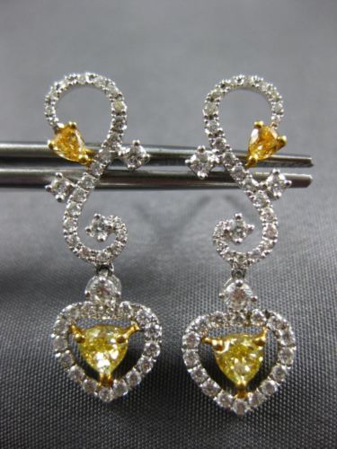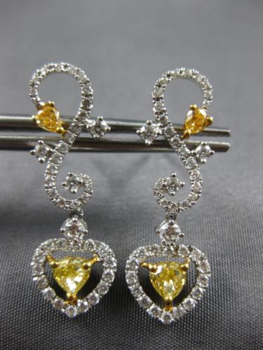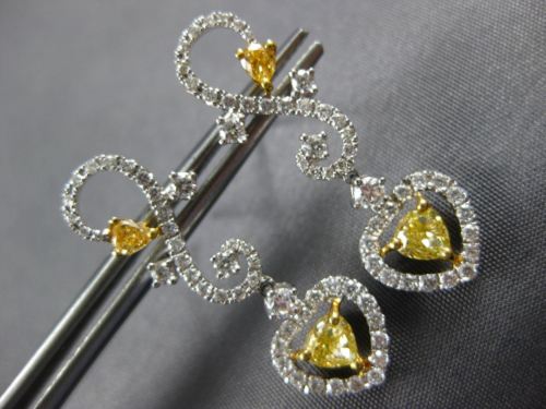 ESTATE 18KT WHITE AND YELLOW GOLD HANGING LOVE EARRINGS. 3D HEART INFINITY DESIGN. DIAMONDS ARE F/G COLOR, VSSI CLARITY .74 CARATS. INTENSE FANCY YELLOW DIAMONDS ARE .83 CARATS. MEASURES 28mm X 9mm. WRITTEN APPRAISAL AVAILABLE. COMES IN A PRESENTABLE GIFT BOX.