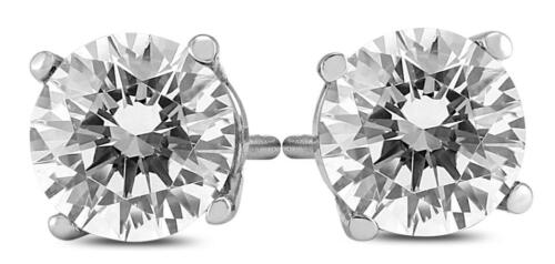 ESTATE 1.5CT DIAMOND 14KT WHITE GOLD 3D ROUND 4 PRONG SCREWBACK STUD EARRINGS