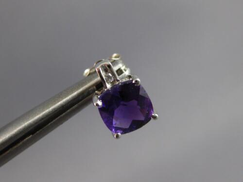ESTATE 14KT WHITE GOLD STUD EARRINGS. 3D CLASSIC DESIGN. ROUND DIAMONDS ARE F/G COLOR, VSSI CLARITY .02 CARATS. AAA EXTRA FACETED SQUARE AMETHYSTS ARE 1.60 CARATS. MEASURES 9mm X 6mm. WRITTEN APPRAISAL AVAILABLE. COMES IN A PRESENTABLE GIFT BOX.