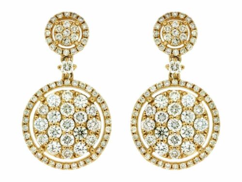 ESTATE 14KT YELLOW GOLD HANGING EARRINGS. 3D CLUSTER FLOWER HALO CLASSIC DESIGN. DIAMONDS ARE F/G COLOR, VSSI CLARITY 1.65 CARATS. WRITTEN APPRAISAL AVAILABLE. COMES IN A PRESENTABLE GIFT BOX.