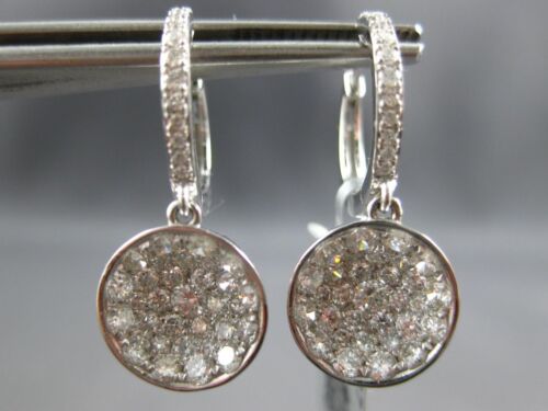 ESTATE 1.65CT DIAMOND 18KT WHITE GOLD ROUND CLUSTER HUGGIE FUN HANGING EARRINGS