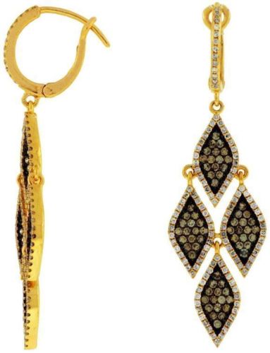 ESTATE 1.6CT WHITE & CHOCOLATE FANCY DIAMOND 14K YELLOW GOLD CHANDELIER EARRINGS