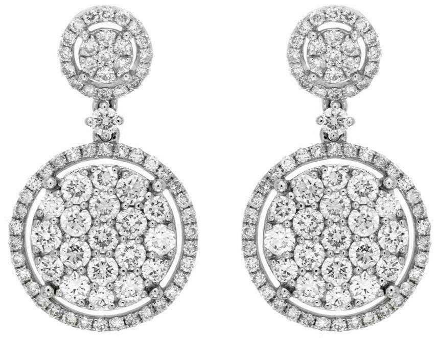 ESTATE 14KT WHITE GOLD HANGING EARRINGS. 3D CLUSTER FLOWER HALO CLASSIC DESIGN. DIAMONDS ARE F/G COLOR, VSSI CLARITY 1.70 CARATS. WRITTEN APPRAISAL AVAILABLE. COMES IN A PRESENTABLE GIFT BOX.