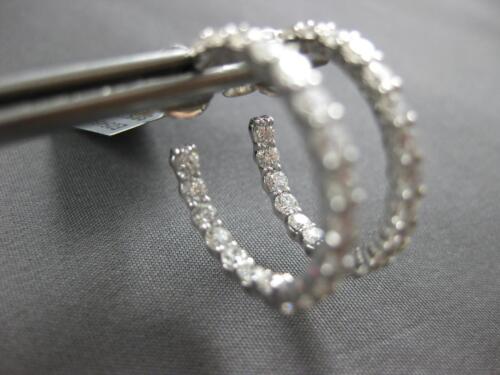 ESTATE 1.70CT DIAMOND 18K WHITE GOLD 3D CLASSIC INSIDE OUT HOOP HANGING EARRINGS