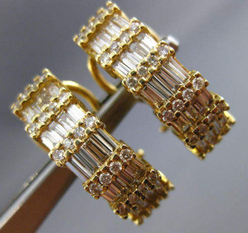 ESTATE 1.75CT DIAMOND 14K YELLOW GOLD 3D ROUND & BAGUETTE HANGING EARRINGS 15722