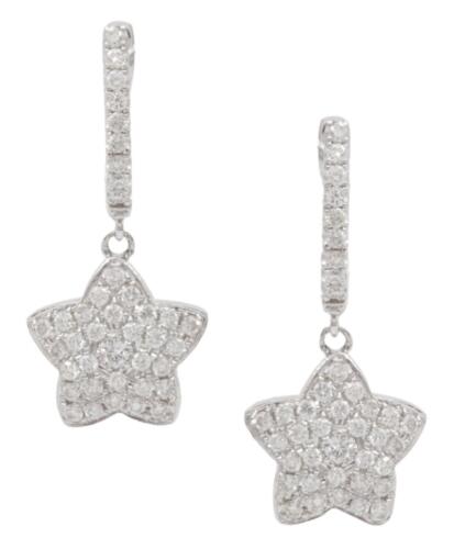 ESTATE 1.7CT DIAMOND 18KT WHITE GOLD 3D CLASSIC PAVE STAR FUN HANGING EARRINGS