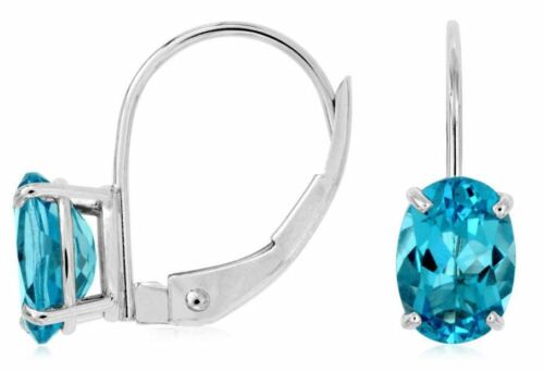 ESTATE 1.80CT AAA BLUE TOPAZ 14KT WHITE GOLD 3D OVAL CLASSIC LEVER BACK EARRINGS