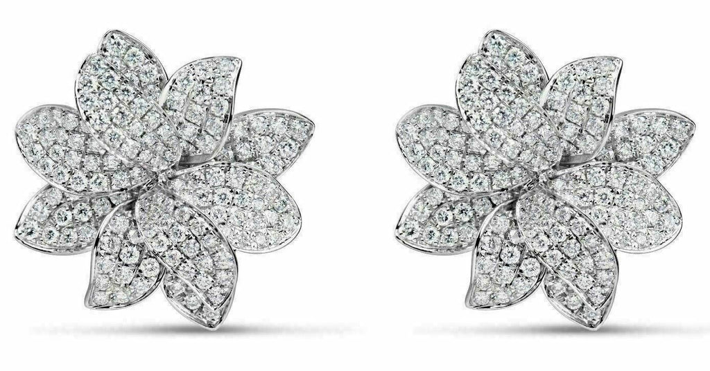ESTATE 1.80CT ROUND CUT DIAMOND 18KT WHITE GOLD 3D CLASSIC FLOWER STUD EARRINGS
