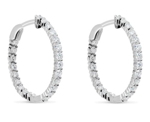 ESTATE 1.81CT DIAMOND 18K WHITE GOLD 3D CLASSIC INSIDE OUT HOOP HANGING EARRINGS