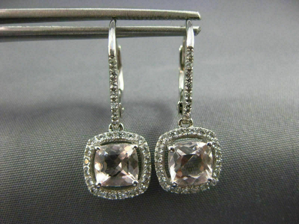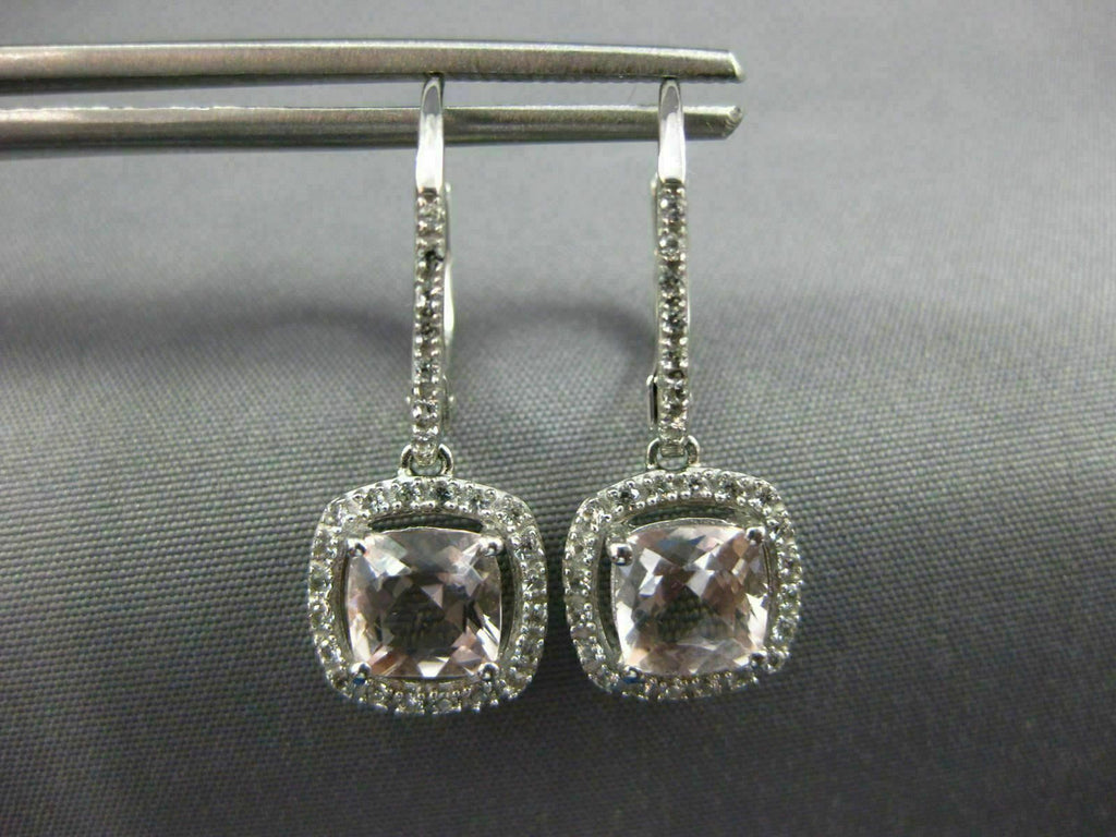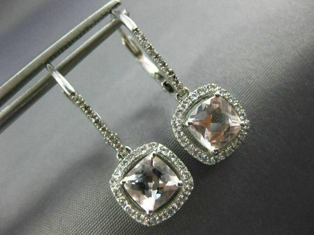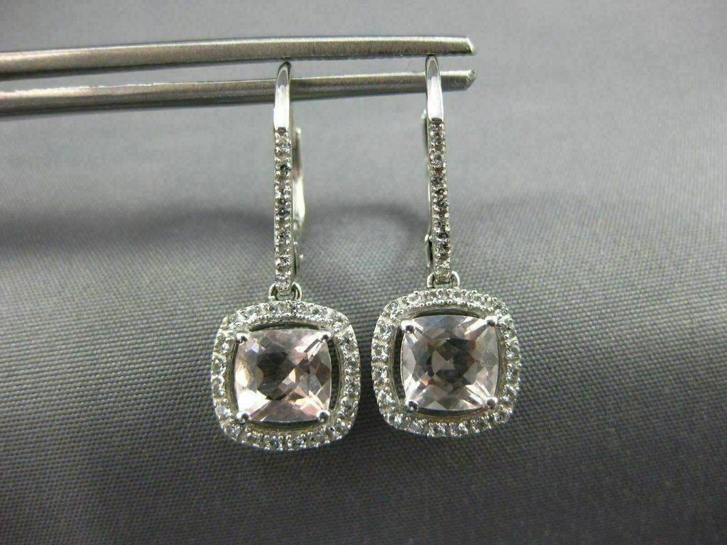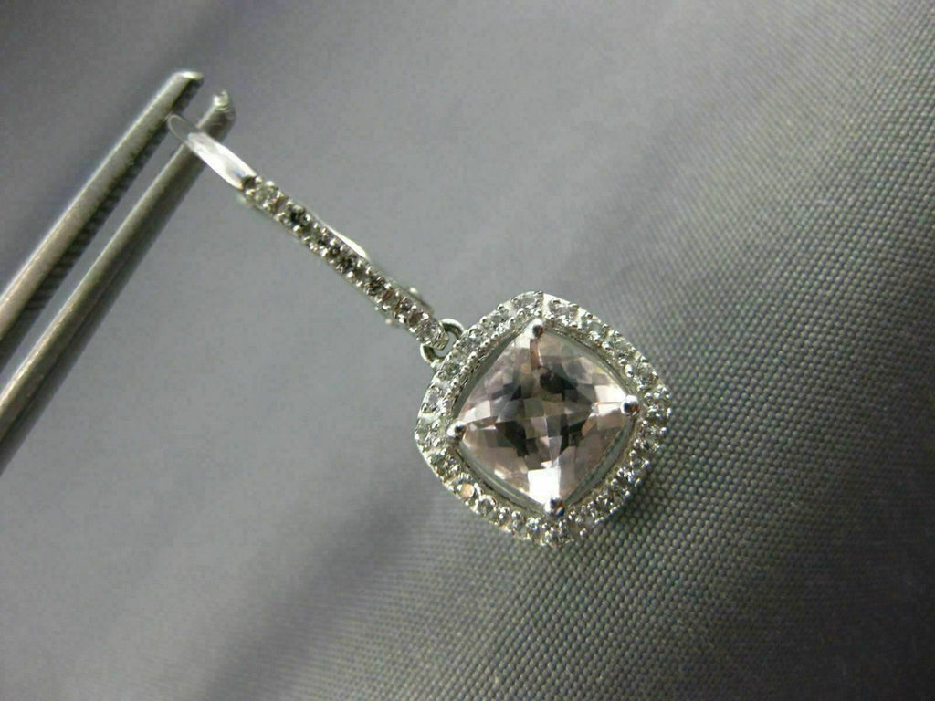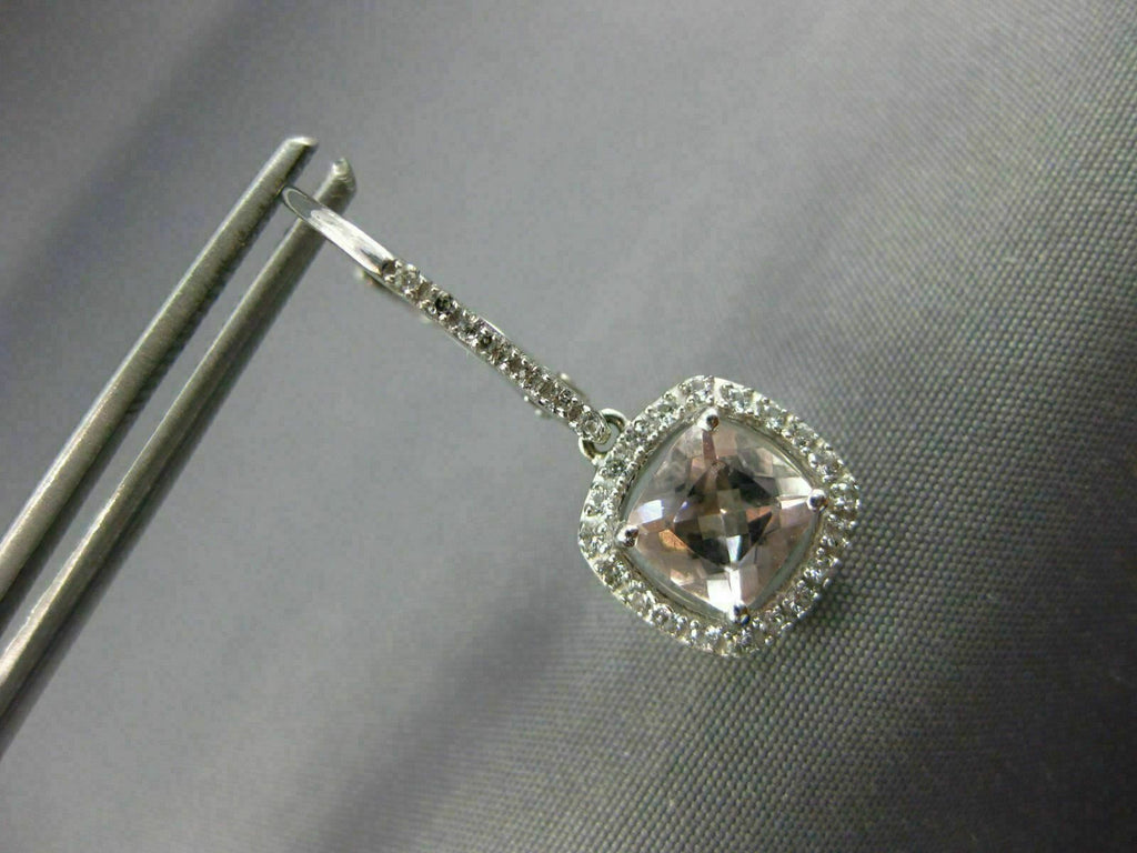 ESTATE 1.83CT AAA MORGANITE 14K WHITE GOLD 3D CUSHION LEVERBACK HANGING EARRINGS