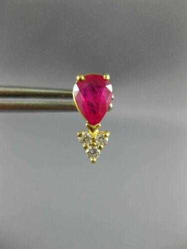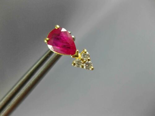 ESTATE 14KT YELLOW GOLD STUD EARRINGS. 3D CLASSIC DESIGN. DIAMONDS ARE F/G COLOR, VVS-VS CLARITY .45 CARATS. AAA PEAR SHAPE RUBIES ARE 1.47 CARATS. MEASURES 12MM WIDE. WRITTEN APPRAISAL AVAILABLE. COMES IN A PRESENTABLE GIFT BOX.