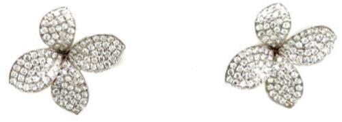 ESTATE 18KT WHITE GOLD STUD EARRINGS. 3D CLASSIC MULTI LEAF FLOWER DESIGN. DIAMONDS ARE F/G COLOR, VSSI CLARITY 1.93 CARATS. WRITTEN APPRAISAL AVAILABLE. COMES IN A PRESENTABLE GIFT BOX.