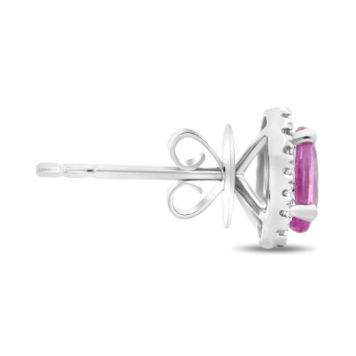 ESTATE 1.93CT DIAMOND & AAA PINK SAPPHIRE 18K WHITE GOLD OVAL HALO STUD EARRINGS