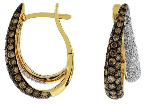 ESTATE 14KT YELLOW GOLD LEVERBACK HANGING EARRINGS. 3D MULTI ROW DESIGN. DIAMONDS ARE F/G COLOR, VSSI CLARITY .38 CARATS. MOCHA DIAMONDS ARE 1.60 CARATS. WRITTEN APPRAISAL AVAILABLE. COMES IN A PRESENTABLE GIFT BOX.