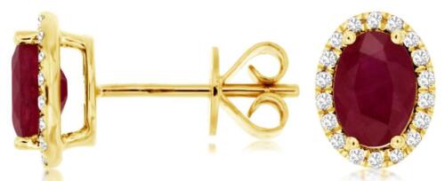 ESTATE 1.99CT DIAMOND & AAA RUBY 14K YELLOW GOLD OVAL & ROUND HALO STUD EARRINGS