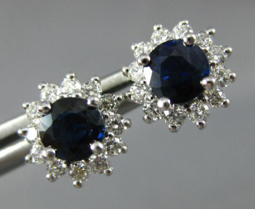 ESTATE 14KT WHITE GOLD STUD EARRINGS. 3D CLASSIC FLOWER DESIGN. DIAMONDS ARE F/G COLOR, VSSI CLARITY .61 CARATS. AAA SAPPHIRES ARE 1.38 CARATS. MEASURES 10mm WIDE. WRITTEN APPRAISAL AVAILABLE. COMES IN A PRESENTABLE GIFT BOX.