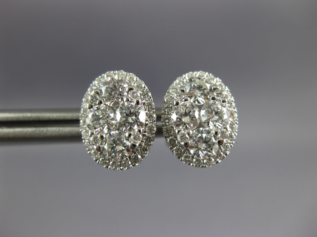ESTATE 18KT WHITE GOLD STUD EARRINGS. 3D CLUSTER INVISIBLE OVAL HALO DESIGN. DIAMONDS ARE F/G COLOR, VSSI CLARITY 1.09 CARATS. MEASURES 10mm X 8mm. WRITTEN APPRAISAL AVAILABLE. COMES IN A PRESENTABLE GIFT BOX.