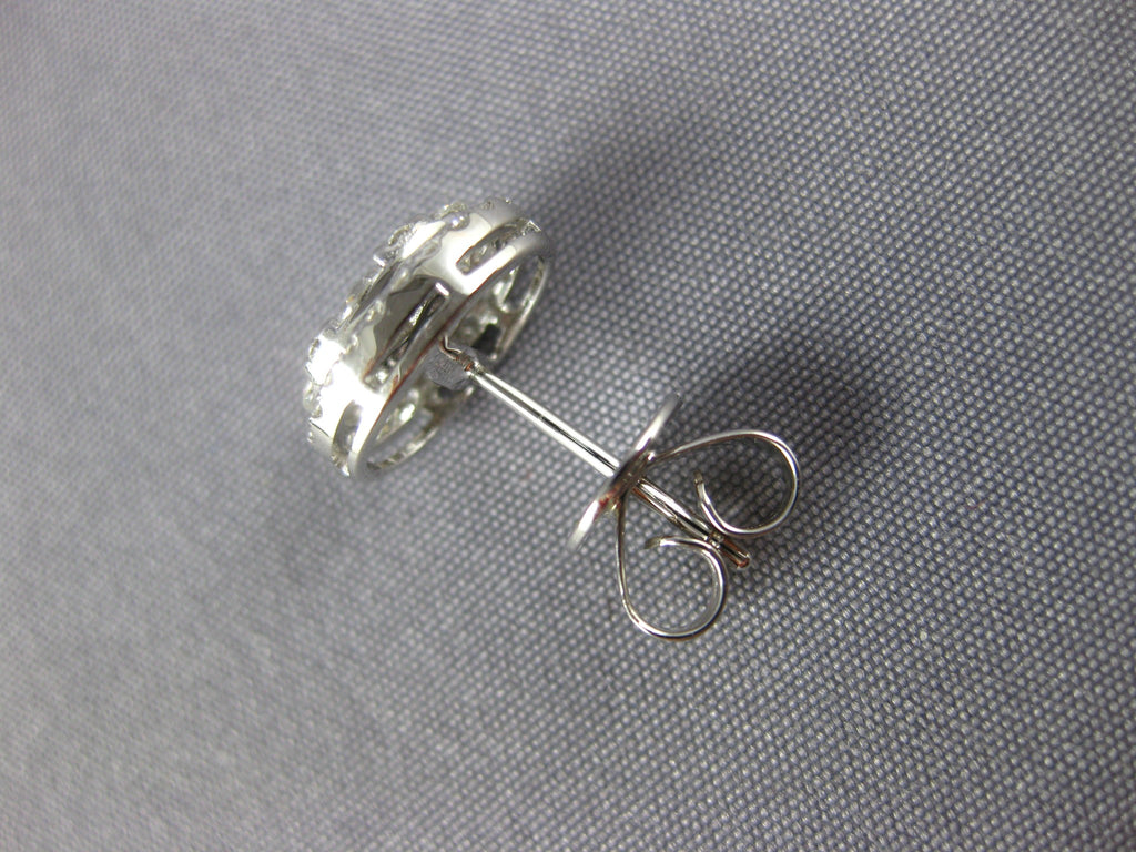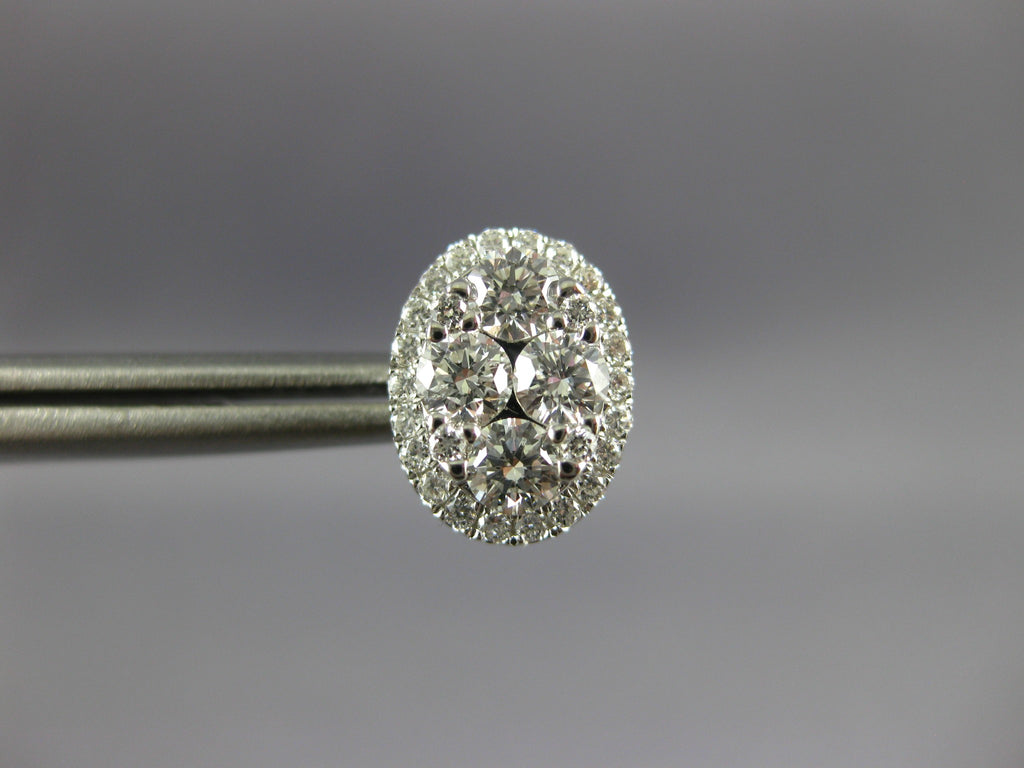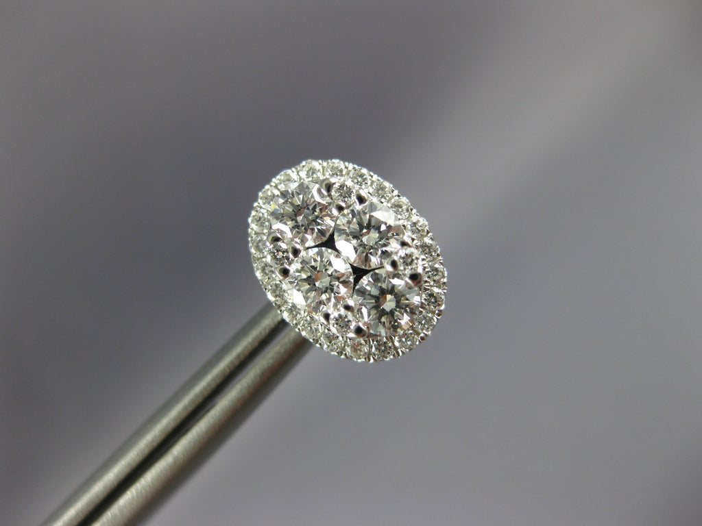 ESTATE 1.09CT DIAMOND 18KT WHITE GOLD CLUSTER INVISIBLE OVAL HALO STUD EARRINGS