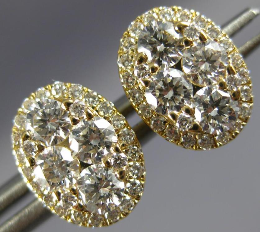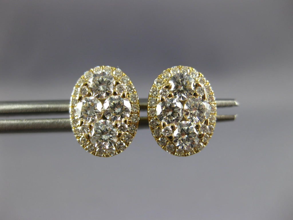 ESTATE 18KT YELLOW GOLD STUD EARRINGS. 3D CLASSIC INVISIBLE OVAL HALO DESIGN. DIAMONDS ARE F/G COLOR, VSSI CLARITY 1.09 CARATS. MEASURES 10mm X 8mm. WRITTEN APPRAISAL AVAILABLE. COMES IN A PRESENTABLE GIFT BOX.