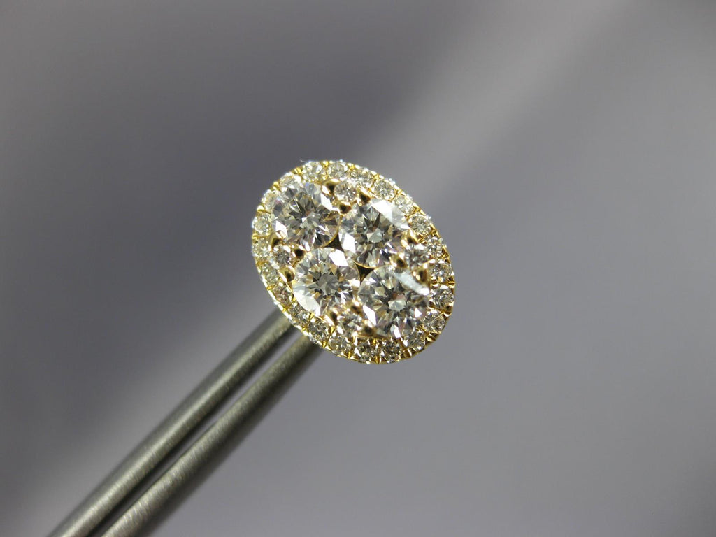 ESTATE 1.09CT DIAMOND 18KT YELLOW GOLD CLUSTER INVISIBLE OVAL HALO STUD EARRINGS