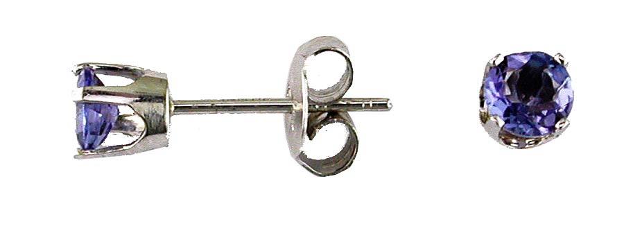 ESTATE 14KT WHITE GOLD STUD EARRINGS. 3D CLASSIC FOUR PRONG DESIGN. AAA EXTRA FACETED ROUND TANZANITES ARE 1.0 CARAT. WRITTEN APPRAISAL AVAILABLE. COMES IN A PRESENTABLE GIFT BOX.