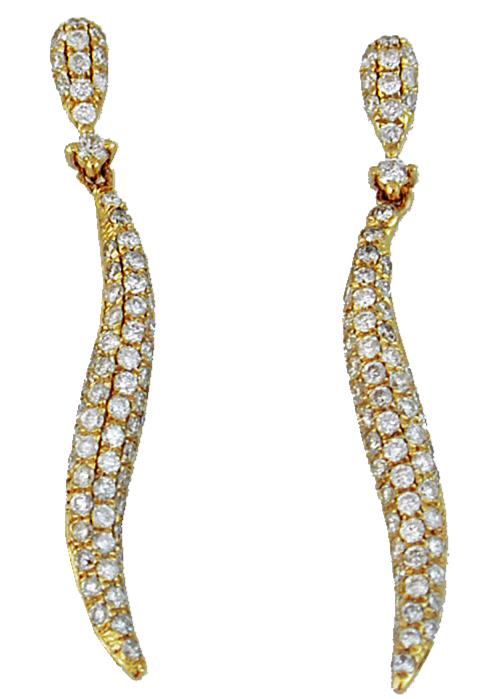 ESTATE 14KT YELLOW GOLD HANGING EARRINGS. 3D MULTI ROW SWIRL DESIGN. DIAMONDS ARE F/G COLOR, VSSI CLARITY 1.0 CARAT. WRITTEN APPRAISAL AVAILABLE. COMES IN A PRESENTABLE GIFT BOX.