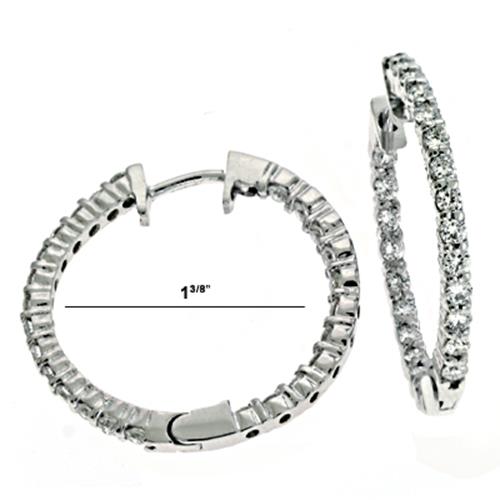 ESTATE 14KT WHITE GOLD HOOP HANGING EARRINGS. 3D CLASSIC INSIDE OUT DESIGN. DIAMONDS ARE F/G COLOR, VSSI CLARITY 1.10 CARATS. WRITTEN APPRAISAL AVAILABLE. COMES IN A PRESENTABLE GIFT BOX.