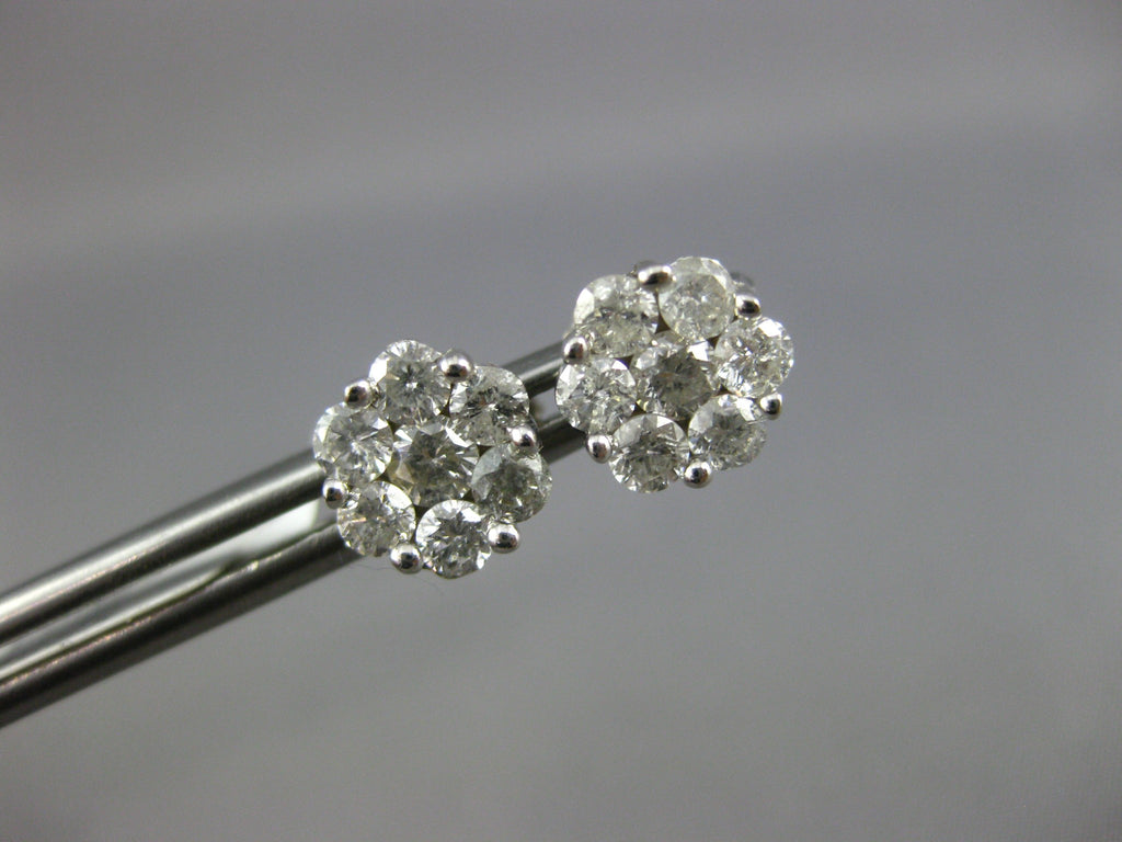 ESTATE 1.15CT DIAMOND 14KT WHITE GOLD 3D CLASSIC CLUSTER STUD EARRINGS