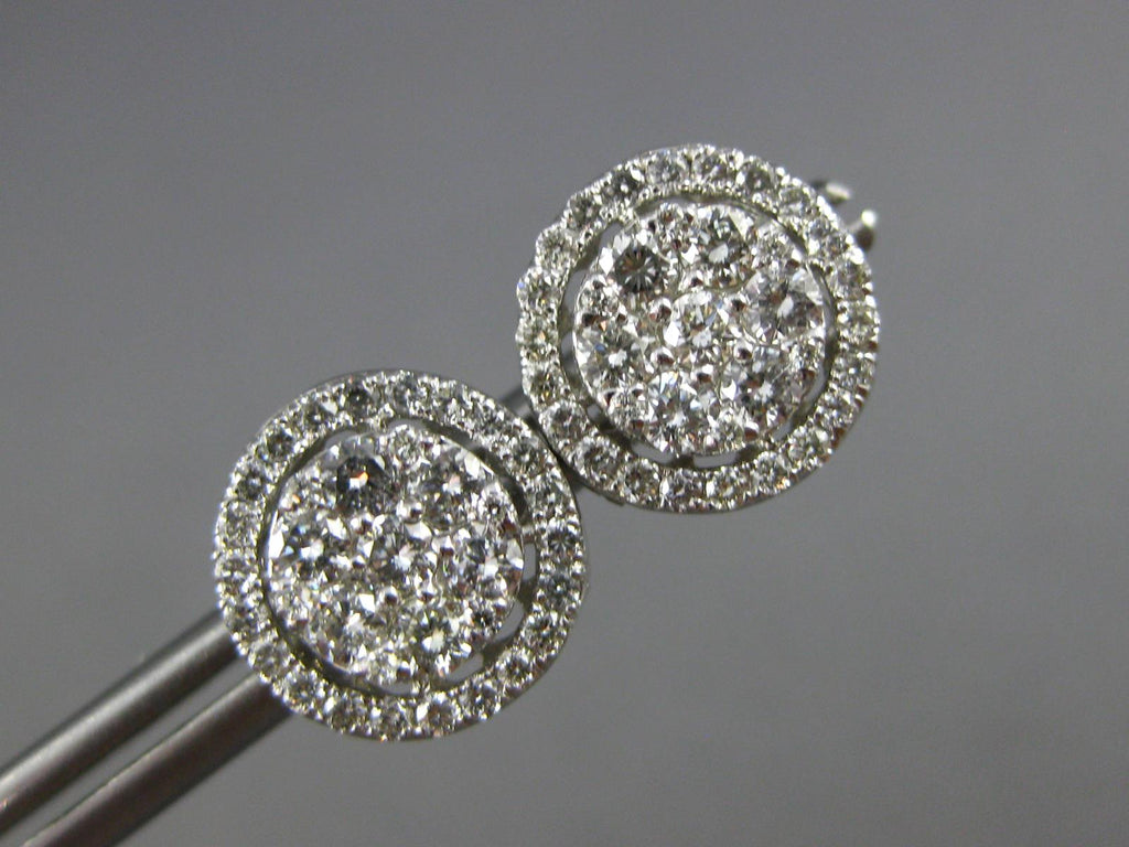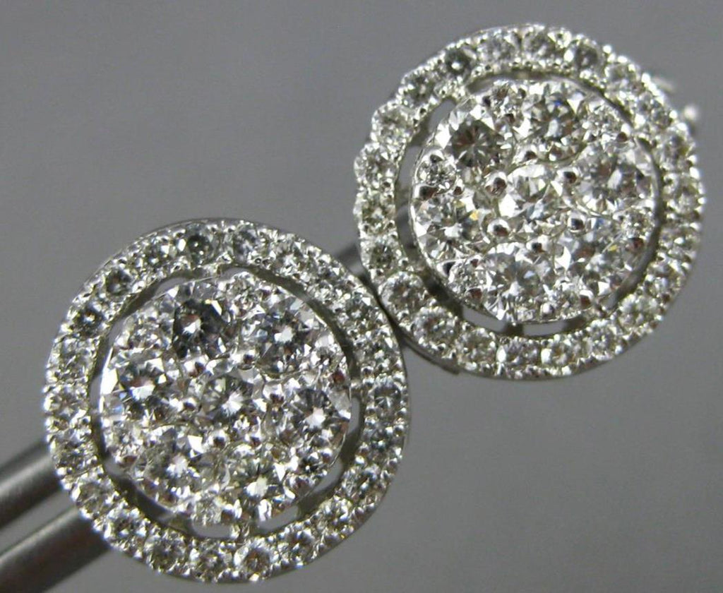 ESTATE 14KT WHITE GOLD STUD EARRINGS. 3D CLASSIC CLUSTER FLOWER HALO DESIGN. DIAMONDS ARE F/G COLOR, VSSI CLARITY 1.20 CARATS. MEASURES 11mm WIDE. WRITTEN APPRAISAL AVAILABLE. COMES IN A PRESENTABLE GIFT BOX.
