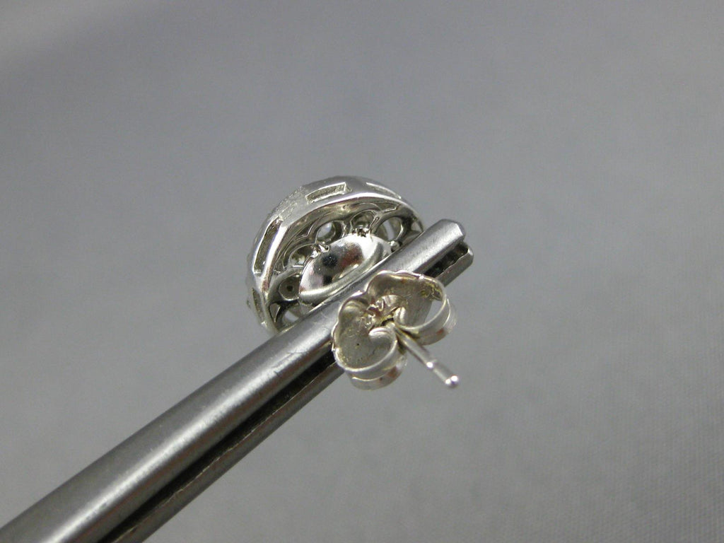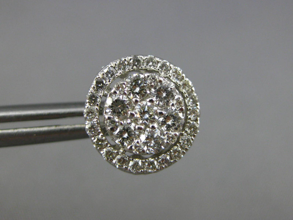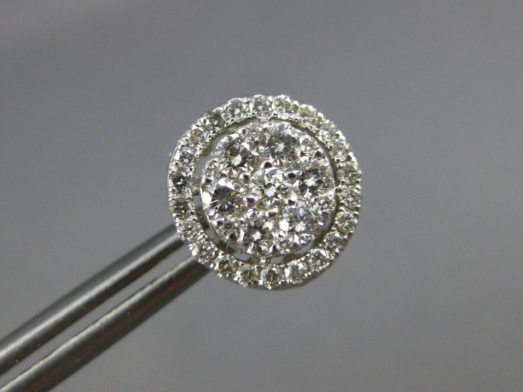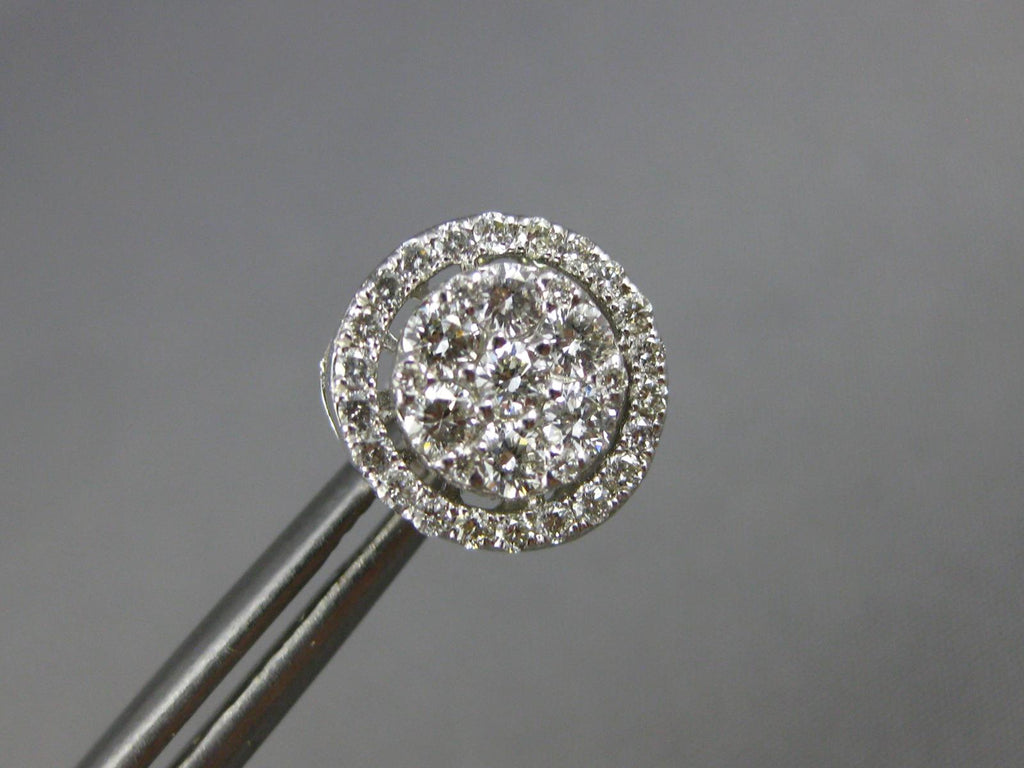 ESTATE 1.20CT DIAMOND 14KT WHITE GOLD CLASSIC CLUSTER FLOWER HALO STUD EARRINGS