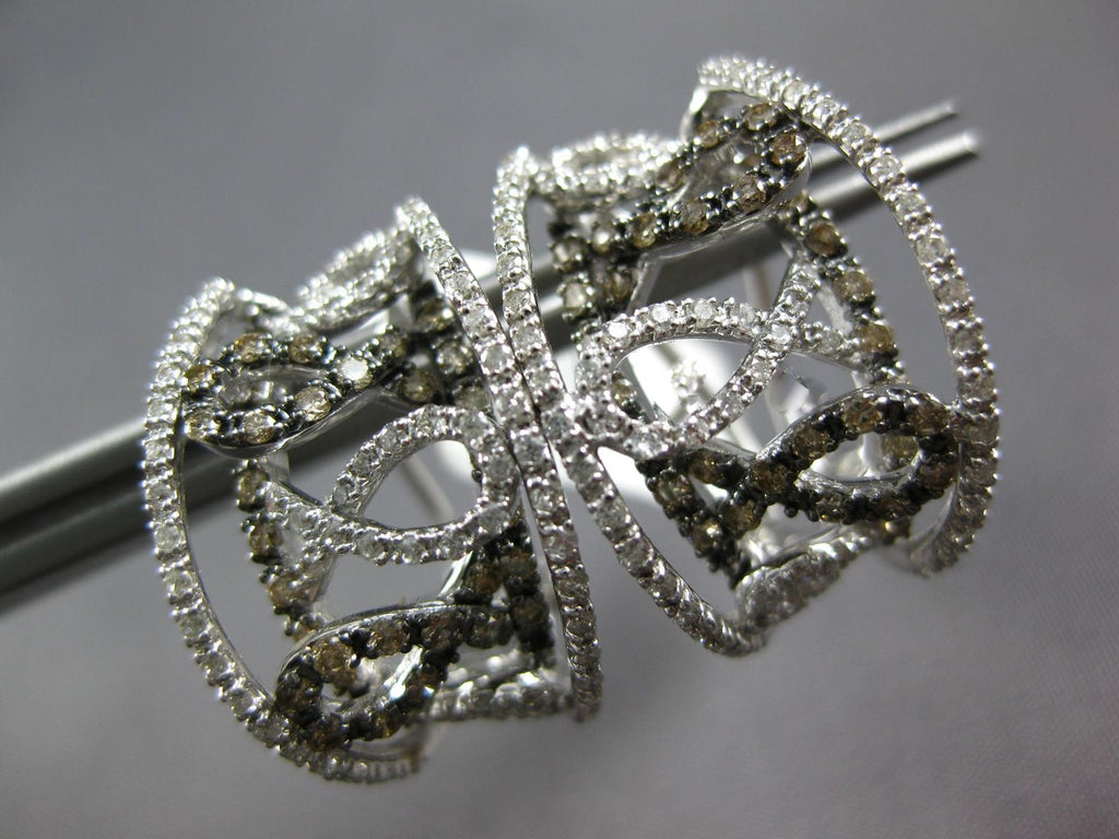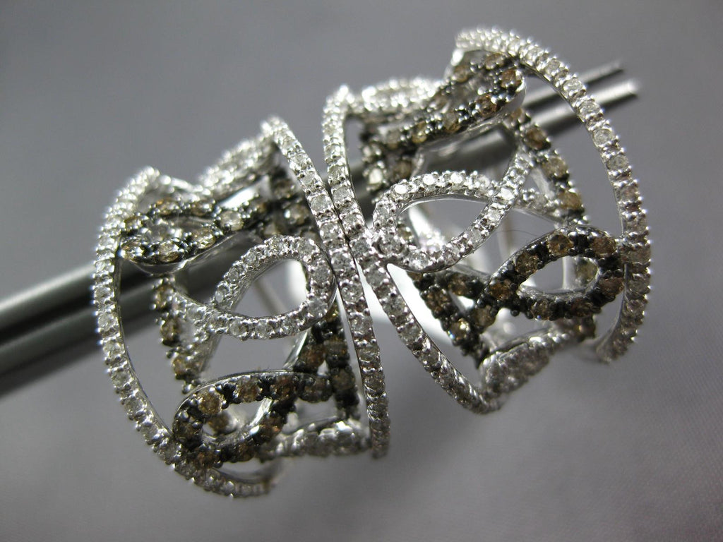 ESTATE 14KT WHITE GOLD CLIP ON HANGING EARRINGS. 3D INFINITY DESIGN. WHITE DIAMONDS ARE F/G COLOR, VSSI CLARITY. WHITE AND CHOCOLATE FANCY DIAMONDS ARE 1.20 CARATS. MEASURES 13.5mm X 17mm. WRITTEN APPRAISAL AVAILABLE. COMES IN A PRESENTABLE GIFT BOX.