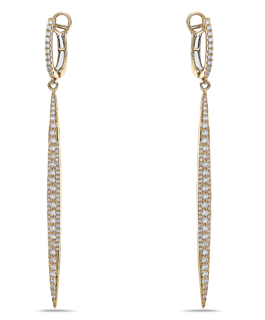 ESTATE 1.21CT DIAMOND 18KT YELLOW GOLD ELONGATED BAR LEVERBACK HANGING EARRINGS