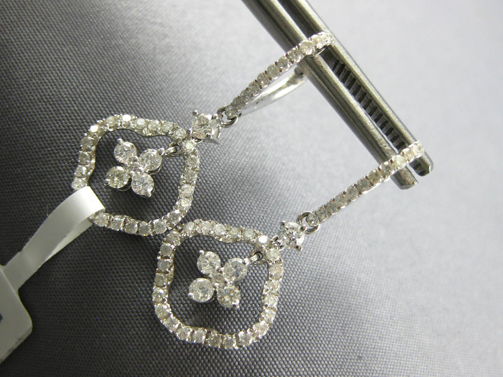 ESTATE 14KT WHITE GOLD HANGING EARRINGS. 3D FLOWER DESIGN. DIAMONDS ARE F/G COLOR, VSSI CLARITY 1.23 CARATS. MEASURES 23.5mm X 11mm. WRITTEN APPRAISAL AVAILABLE. COMES IN A PRESENTABLE GIFT BOX.