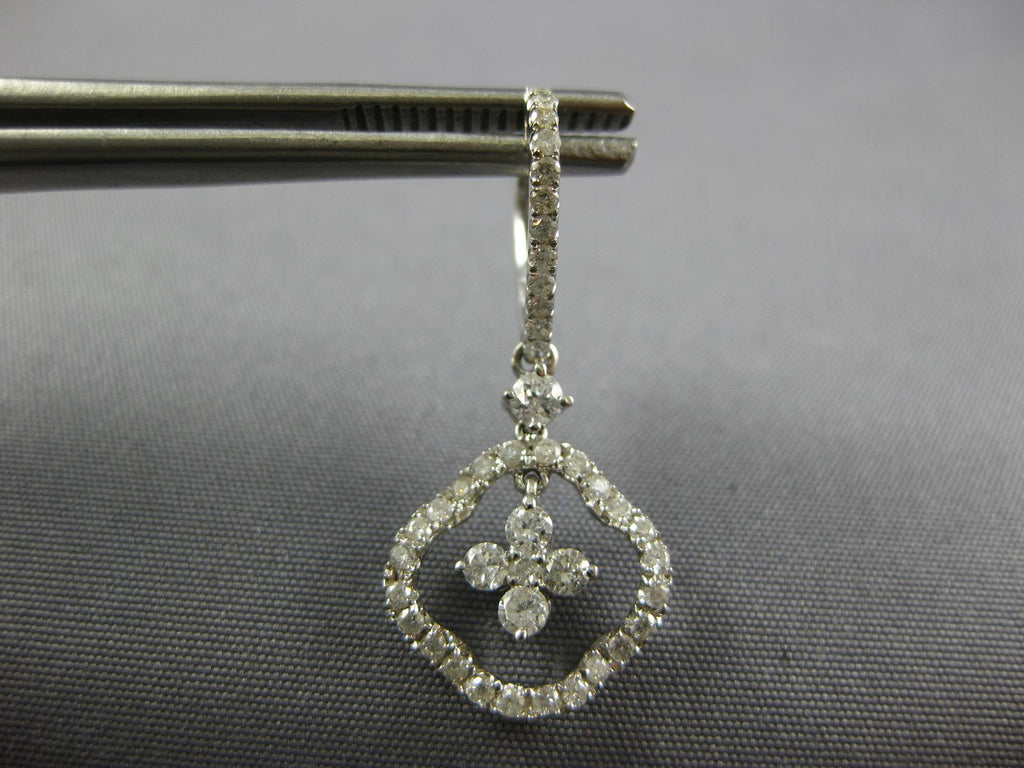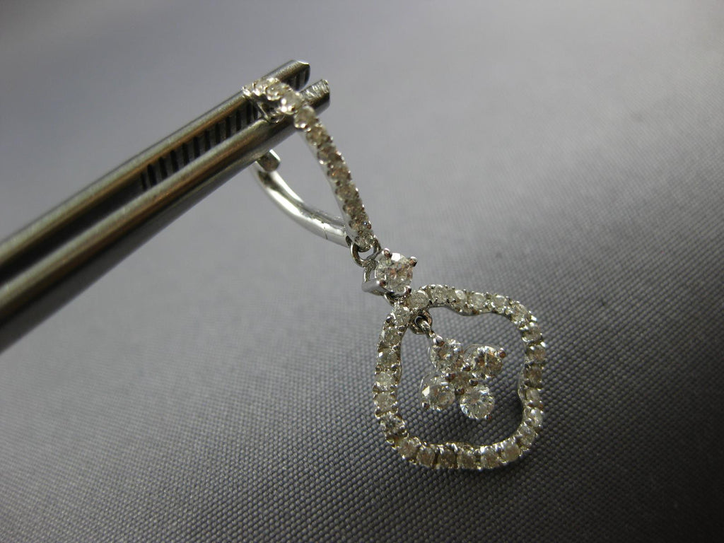 ESTATE 1.23CT DIAMOND 14KT WHITE GOLD 3D CLASSIC FLOWER HANGING EARRINGS