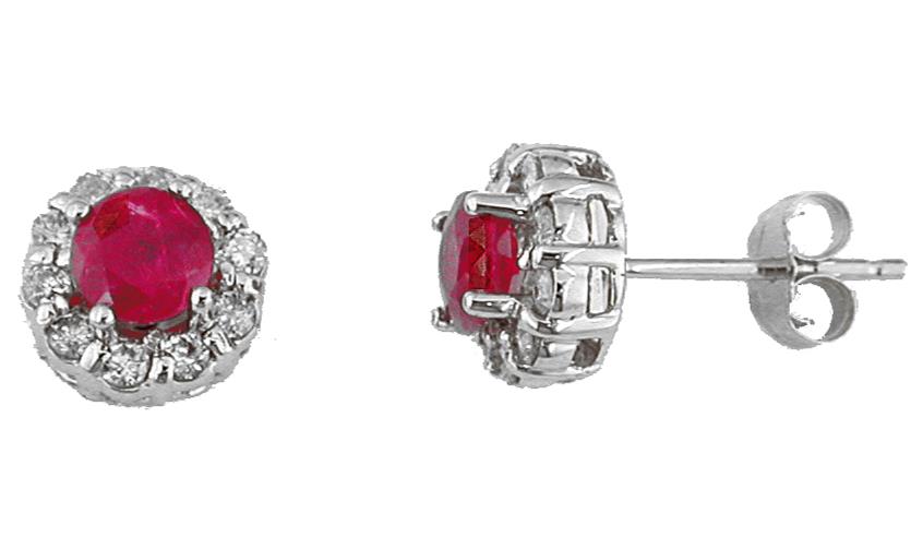 ESTATE 14KT WHITE GOLD STUD EARRINGS. 3D CLASSIC FLOWER DESIGN. DIAMONDS ARE F/G COLOR, VSSI CLARITY .40 CARATS. AAA RUBIES ARE .90 CARATS. WRITTEN APPRAISAL AVAILABLE. COMES IN A PRESENTABLE GIFT BOX.