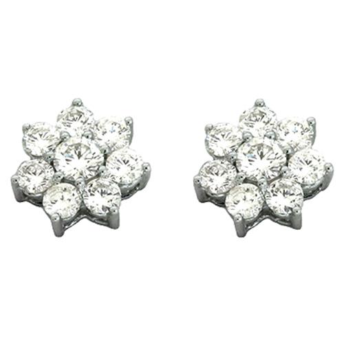 ESTATE 14KT WHITE GOLD STUD EARRINGS. 3D CLASSIC SEVEN STONE FLOWER DESIGN. DIAMONDS ARE F/G COLOR, VSSI CLARITY 1.36 CARATS. MEASURES 10mm WIDE. WRITTEN APPRAISAL AVAILABLE. COMES IN A PRESENTABLE GIFT BOX.
