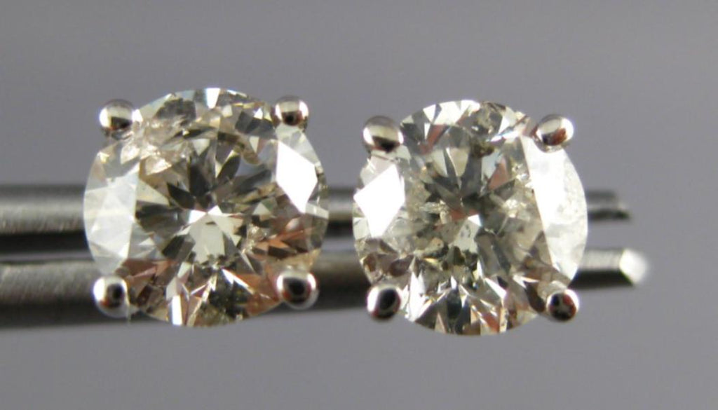 ESTATE 1.45CT DIAMOND 14K WHITE GOLD CLASSIC ROUND 4 PRONG MARTINI STUD EARRINGS