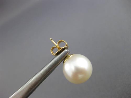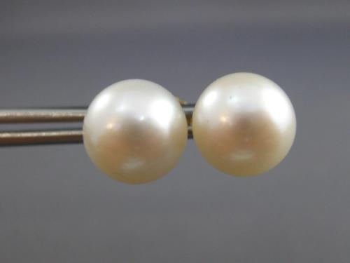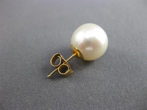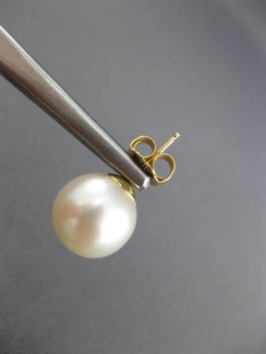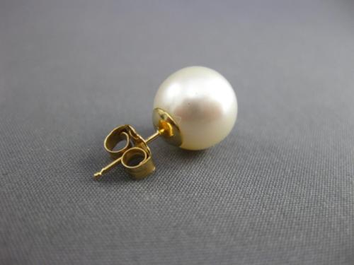 ESTATE 14KT GOLD PUSHBACK STUD EARRINGS. 3D DESIGN. FEATURES AAA SOUTH SEA PEARLS. MEASURES 10mm WIDE. WRITTEN APPRAISAL AVAILABLE. COMES IN A PRESENTABLE GIFT BOX.